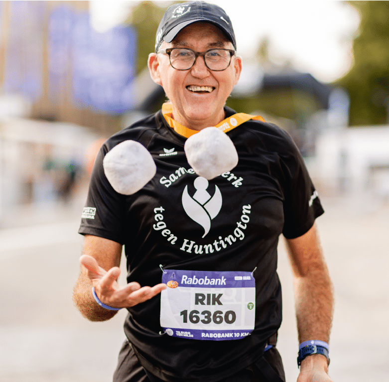 Tegenwoordig zamelt hij geld in voor onderzoek naar de ziekte van Huntington. Deze ziekte, met symptomen van Alzheimer en ALS, is erfelijk en dodelijk. “Tijdens een loop kwam ik iemand tegen uit mijn dorp die me vertelde dat zijn vrouw aan deze, vrij onbekende, maar vreselijke ziekte lijdt. Ik heb me toen bij het campagneteam Huntington gevoegd. Door mijn jongleren trek ik nogal eens wat aandacht van media. Zichtbaarheid is ontzettend belangrijk voor een onbekende ziekte als deze. Het geeft een enorm gevoel van voldoening om te kunnen bijdragen aan de oplossing en daarmee aan iets dat veel groter is dan jezelf.”